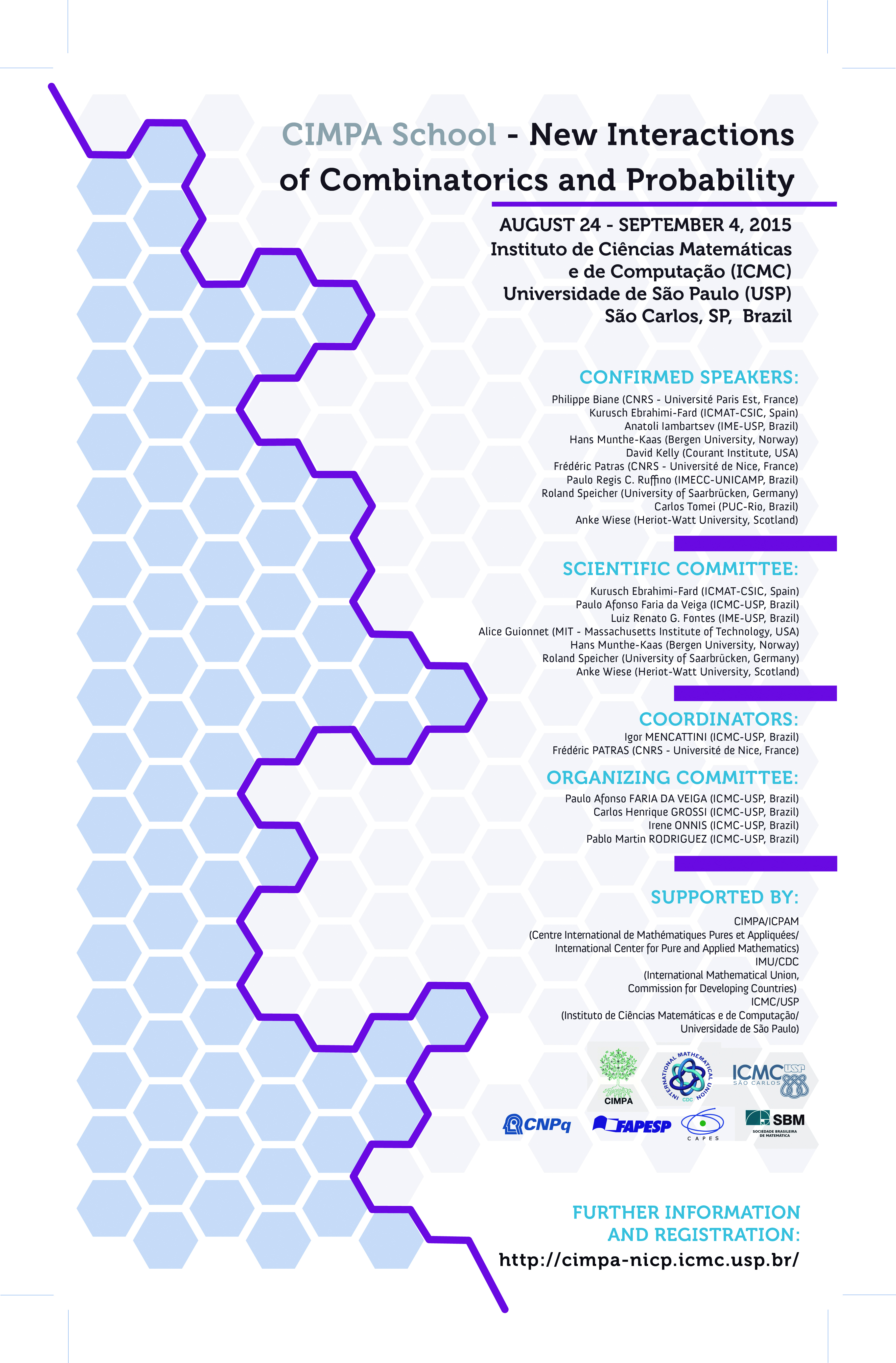 • "Trends in Computational Mathematics", City Univ. of Hong Kong, 18-20 January 2016, Hong Kong. • "Mathematical Perspectives in Biology", Poster, ICMAT, 3-5 February 2016, Madrid, Spain. • "Paths to, from and in renormalisation", 8-12 February 2016, Univ. Potsdam - Institut für Mathematik, Potsdam, Germany. • Univ. de Nice Sophia-Antipolis, Lab. J.A.Dieudonné, Parc Valrose, Nice, France, February - March, 2016. • Univ. des Saarlandes, Fachrichtung Mathematik, "Research group in Free Probability", Saarbrücken, Germany, March, 2016. • Univ. de La Rioja, "Departamento de Matemáticas y Computación", Logroño, Spain, April 2016. • European Research Centres on Mathematics (ERCOM) meeting, Euler International Mathematical Institute, St.Petersburg, Russia, April 15-16, 2016. • Mathematics Department, The Univ. of Warwick, Probability seminar, June 20-23, 2016, Warwick, UK. • Escuela JAE de Matemáticas 2016, Poster, ICMAT, Madrid, Spain. June 27 - July 15, 2016. POSTER • Humboldt-Univ. zu Berlin, Mathematical Physics, research seminar, July 10-13, 2016, Berlin, Germany. • Laboratoire de Probabilités et Modèles Aléatoires (LPMA), Univ. Pierre et Marie Curie Paris, Paris, France, July 18-22, 2016. • Computer Science and Artificial Intelligence Department, Univ. of the Basque Country, San Sebastian, Oct. 10-14, 2016. • Analytic versus Combinatorial in Free Probability, 4-9 December 2016, Banff International Research Station (BIRS), Alberta, Canada. 2015 • "Workshop on Hopf